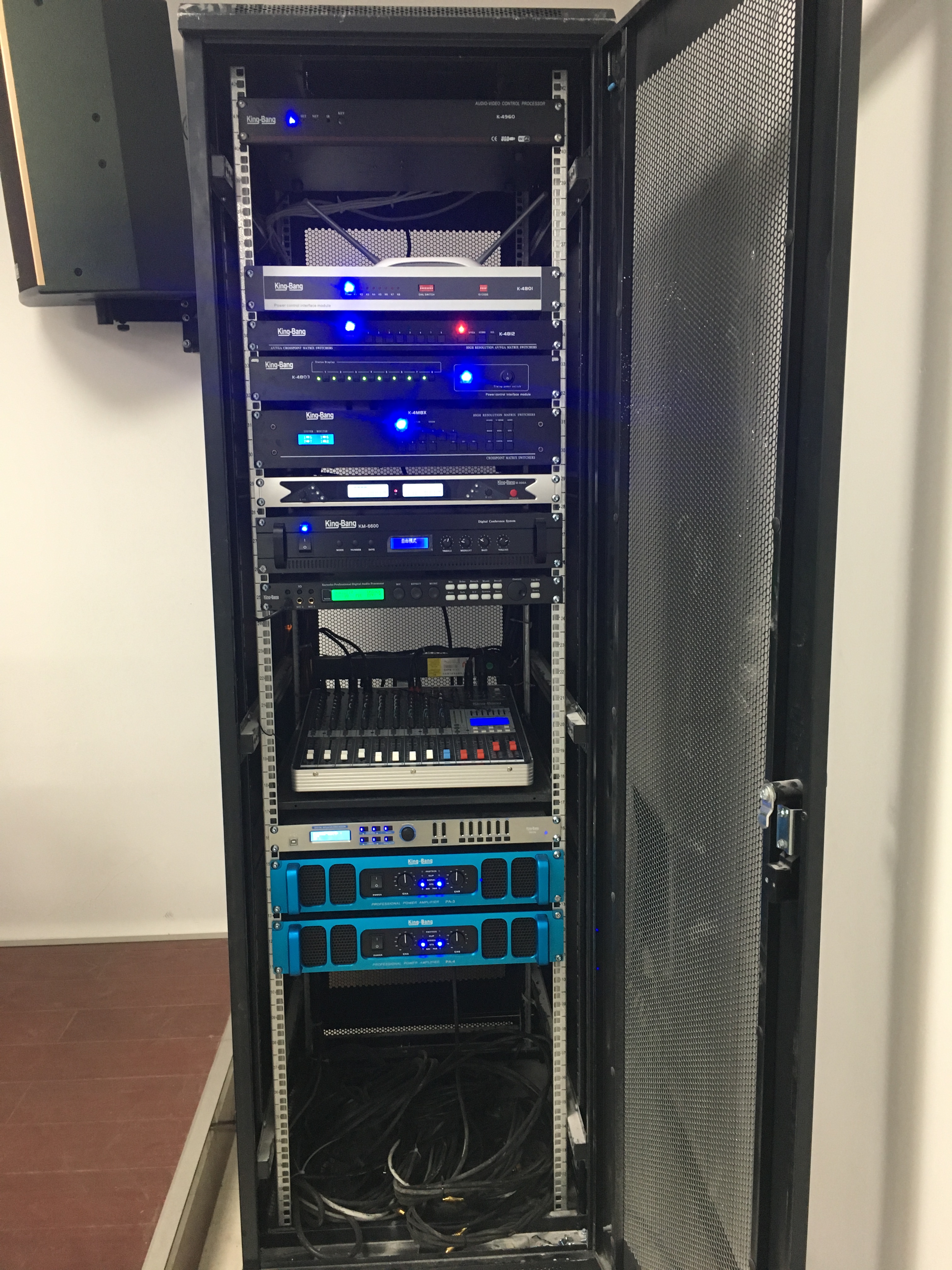 雙通道專業(yè)功放(PA-4)、10路調音臺(M10RUD)、專業(yè)數碼HI房卡拉OK前級(X5)、音箱處理器(DP26),專業(yè)音箱(KB-12)等。