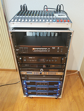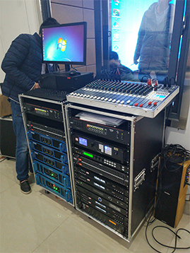 音頻環境的建立離不開電聲設備,它由以下四個部分組成:聲源設備——指拾音設備、影音信號播放設備如:拾音話筒、CD、MD、DAT、DVD等設備;調控設備——指對聲源設備送出的音頻信號等多路的音頻信號進行前級的放大和混音輸出、音頻信號處理的設備,如:調音臺、